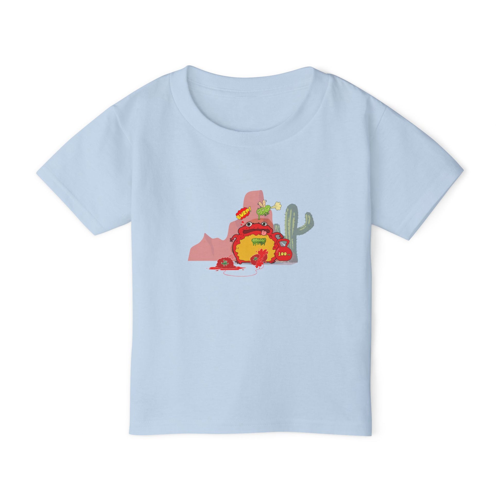 This toddler tee brings a playful southwestern story to little wardrobes. A cheeky, slightly mischievous toad — rendered with innocent charm — lounges beside a stylized Ulluru silhouette while tacos and desert motifs weave around it. The scene feels sun-warm and a little rebellious, like a tiny explorer who found a fiesta in the scrub. Soft, breathable cotton and a classic fit keep wriggling, climbing, and snack-time comfortable. Dress them in this shirt when you want their personality to shine: bright, curious, and a touch impish.